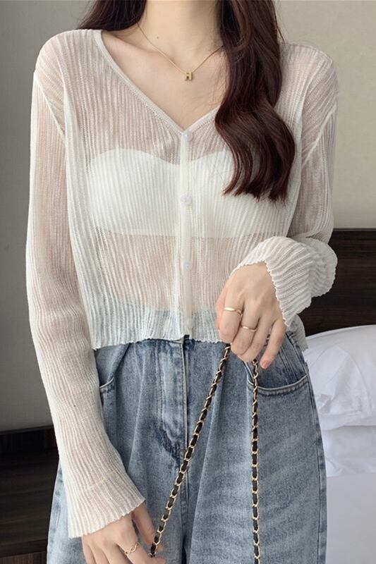 トップス カーディガン ショール ショート丈 長袖 レギュラー袖 Vネック スリム ストレート プリーツ 前開き 透け感 薄手 きれいめ シンプル 上品 おしゃれ 大人女子 クール エレガント 無地 春 夏 秋 10代 20代 30代 女性用 通勤 学生 通学 デート お出かけ 女子会 お泊まり 休日 パーティー イベント 旅行 海 プール 高原 ホテル レストラン ショッピング 重ね着 オルチャン ファッション コーデ スタイル 楽ちん モテ ギフト 安い インスタ映え 韓国風 S M L 黒 白