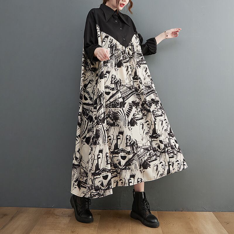 プリント シャツ ワンピース ロングスカート シャツワンピース フレアワンピース ワンピドレス ミモレ丈 ロング丈 長袖 襟付き ワイド Aライン 切り替えデザイン ポケット かわいい 大人可愛い カジュアル 大人 上品 おしゃれ 大人女子 ラフ ラブリー キュート ルーズ 個性的 モード系 存在感 抜け感 春 夏 秋 20代 30代 40代 ママ マタニティ 学生 デート お出かけ 公園デビュー 女子会 休日 着回し 普段使い 楽ちん モテ 体系カバー 大きめ ゆったり ゆる サイズ 色展開 黒 緑
