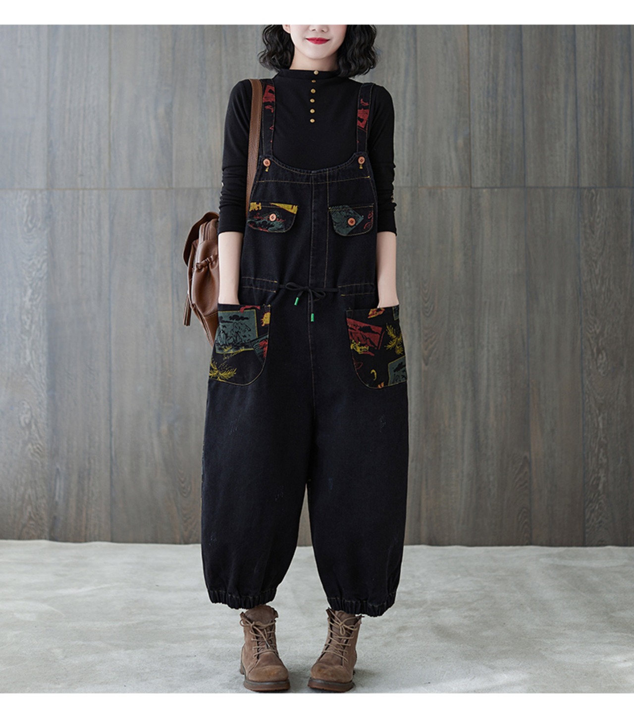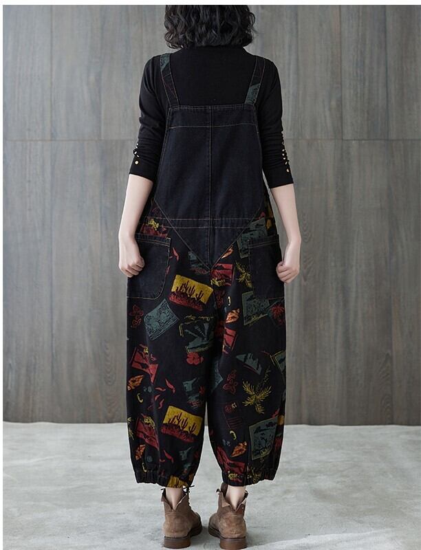 プリント サスペンダージーンズ ジャンプスーツ ボトムス オールインワン サロペット ワイドパンツ ノースリーブ ストレート ワイド 切り替えデザイン ポケット ハイウエスト かわいい 大人可愛い カジュアル おしゃれ お洒落 レトロ こなれ感 ラフ ボーイッシュ ルーズ 個性的 クール 抜け感 オールシーズン 10代 20代 30代 レディース 学生 通学 お出かけ 公園デビュー 女子会 休日 アウトドア 着回し 普段使い 重ね着 体系カバー 脚長 サイズ M L XL 2XL 大きいサイズ ゆったり