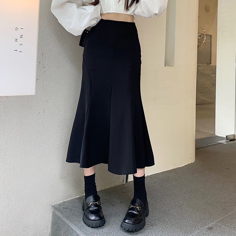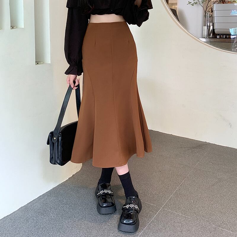 ハイウエスト マーメイド スカート ミモレ丈 ロング丈 きれいめ 上品 おしゃれ 大人可愛い キュート セクシー エレガント OL 通勤 通学 デート S M L 黒 ブラック 茶色 ブラウン AS10129