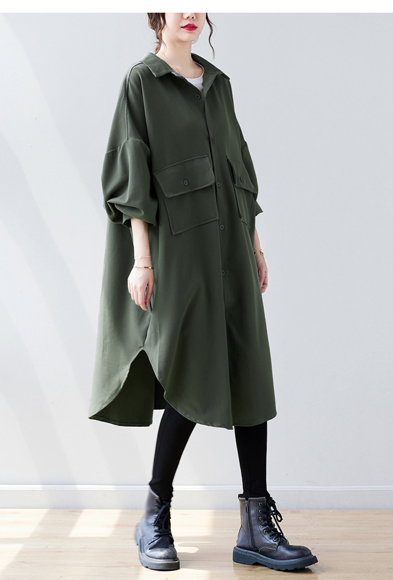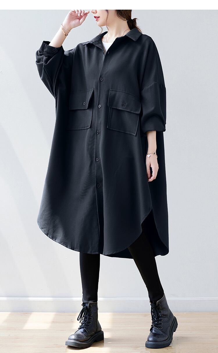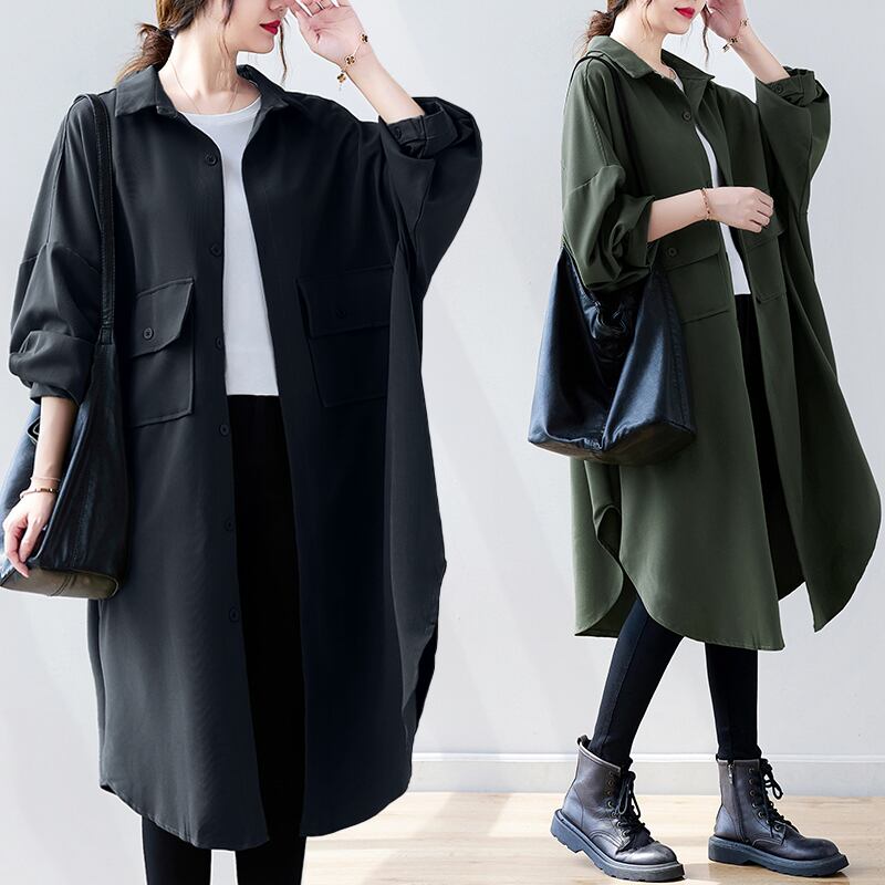 ロングシャツ ブラック グリーン 大人カラー 大きいサイズ トップス シャツ ロング丈 袖あり 長袖 ドロップショルダー Vネック 襟付き ビッグシルエット ポケット 前開き ボタン オーバーサイズ シンプル カジュアル 大人 おしゃれ お洒落 かっこいい 大人女子 こなれ感 ルーズ 個性的 スマート 無地 春 秋 10代 20代 30代 40代 レディース 女性用 学生 デート お出かけ 公園 女子会 お茶会 ショッピング 着回し 普段使い 重ね着 体系カバー XL 2XL 大きい ゆったり ゆる