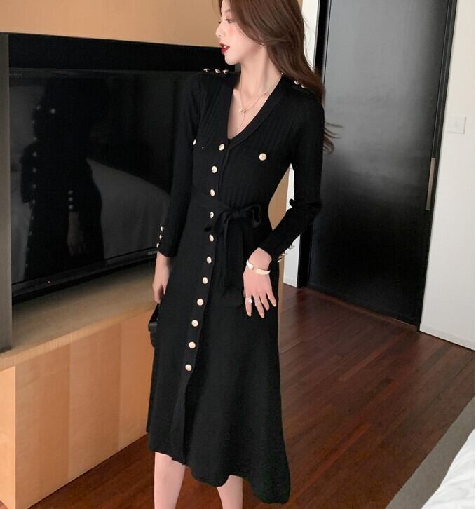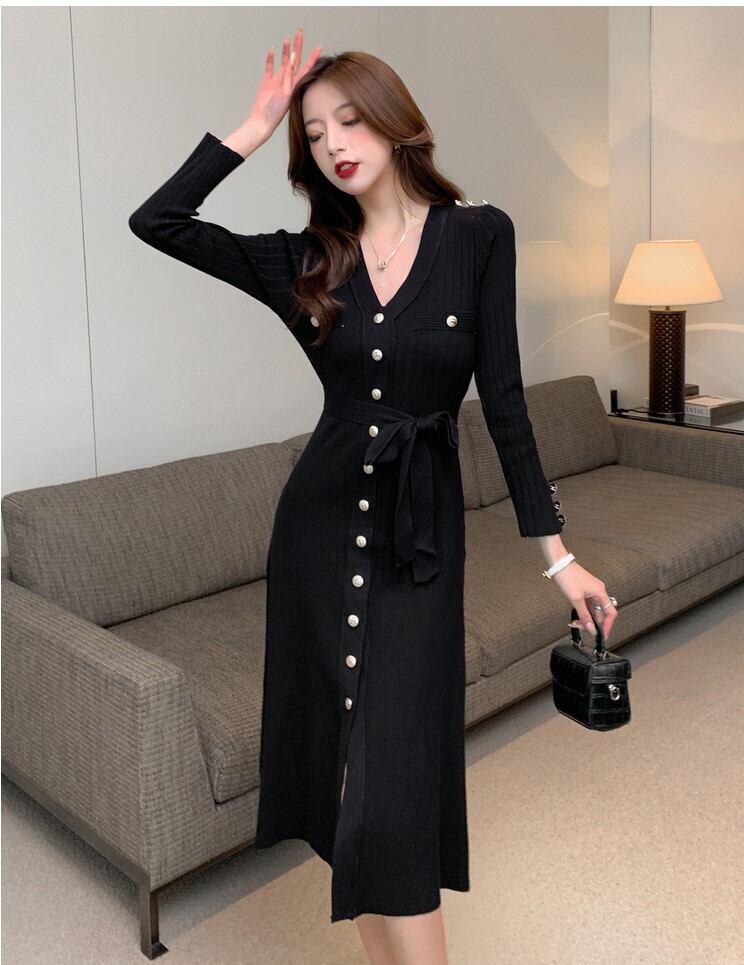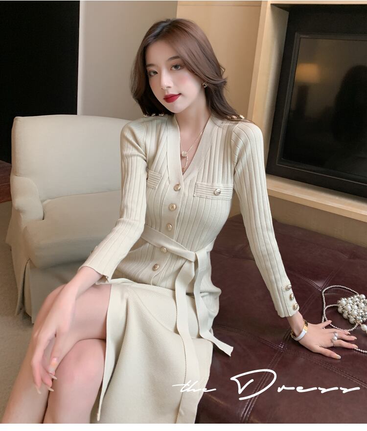 Vネック ニット ワンピース ロングスカート ワンピドレス ロング丈 ミディアム丈 ミドル丈 長袖 スリム タイト 細身 ストレート Iライン ベルト ウエストリボン スリット ハイウエスト リブ かわいい 大人可愛い きれいめ シンプル カジュアル 大人 上品 おしゃれ 大人女子 こなれ感 ラブリー クール モード系 セクシー 存在感 抜け感 無地 秋 冬 20代 30代 40代 レディース 学生 デート お出かけ 女子会 パーティー イベント 着回し 普段使い モテ 脚長 サイズ S M L XL