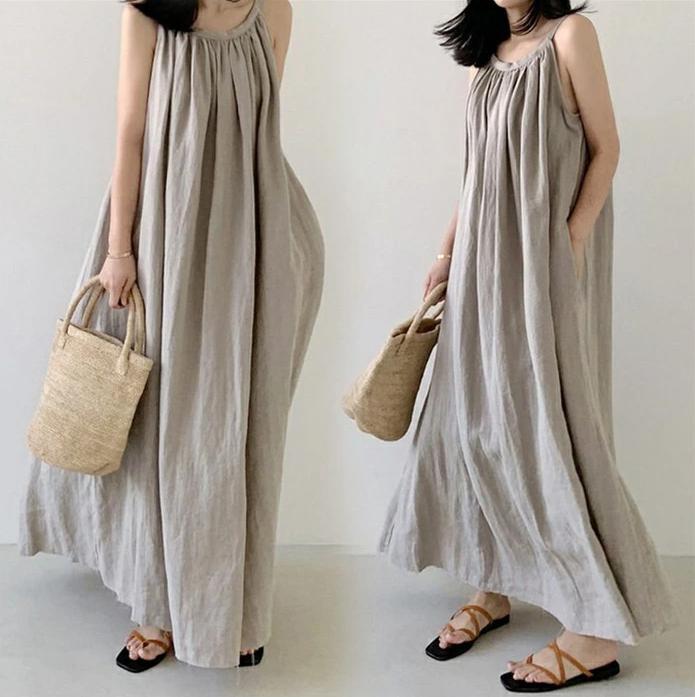 レディース ワンピース キャミワンピース ロング丈 マキシ丈 ノースリーブ ラウンドネック 大人 上品 おしゃれ ラフ 無地 30代 40代 韓国系 ファッション KS10038