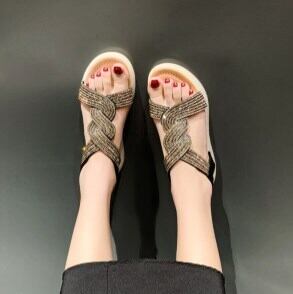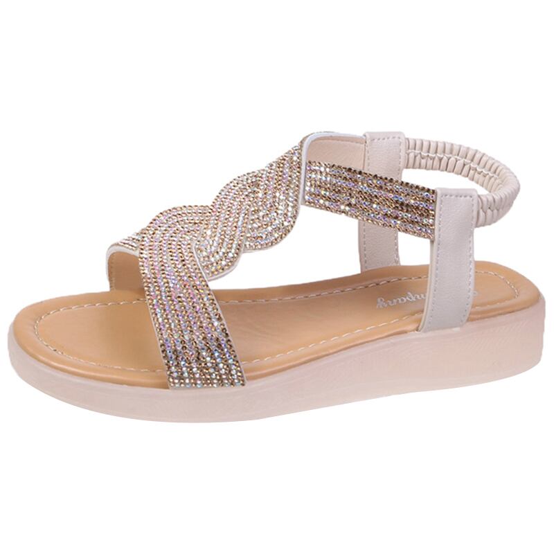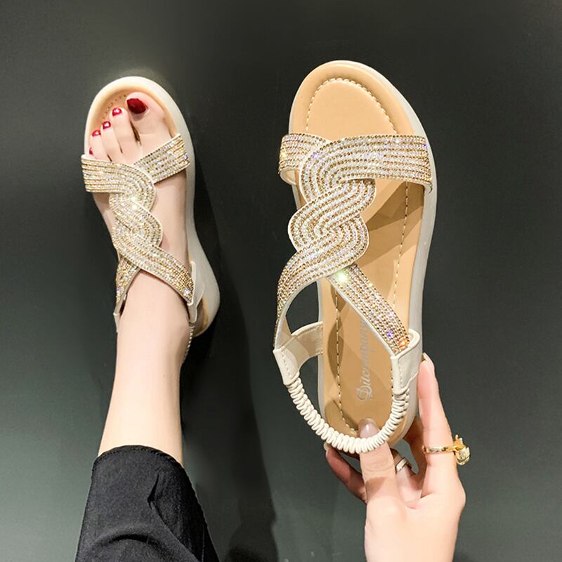 ラインストーン装飾がおしゃれなローヒールサンダル。