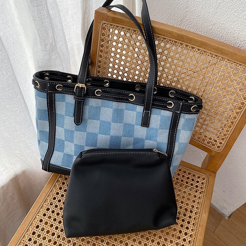 バッグ 鞄 レディースバッグ ショルダーバッグ トートバック 肩掛けバック 大容量 収納 多収納 便利 柔らかい 仕切り スクエア型 四角 ファスナー ポケット ポリエステル デニム かわいい カジュアル おしゃれ ラフ キュート チェック柄 格子柄 10代 20代 30代 40代 女性用 ママ OL 通勤 学生 通学 お出かけ お泊まり 休日 アウトドア イベント リゾート 旅行 海 ショッピング 普段使い ギフト 安い インスタ映え オールシーズン 誕生日 母の日 クリスマス 大きめ A4 青