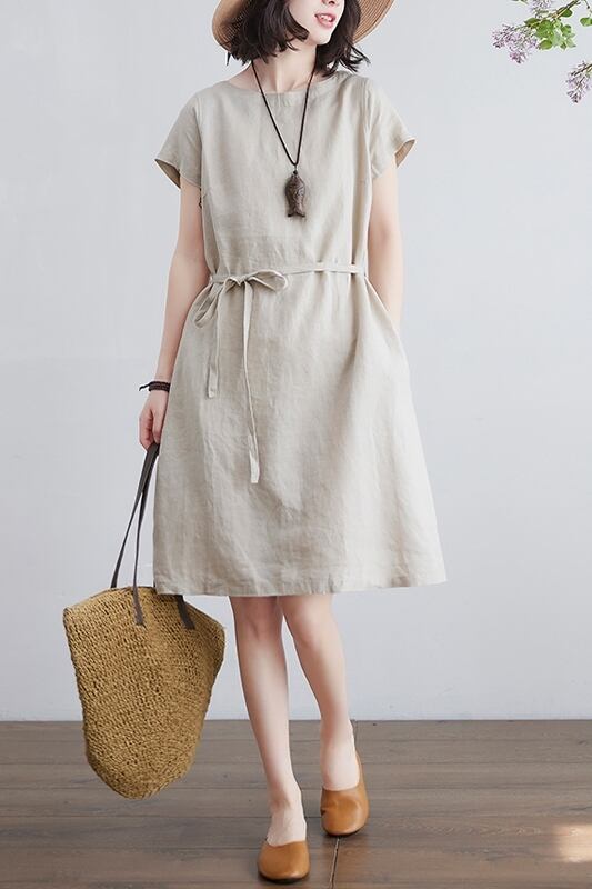 ワンピース プルオーバー 膝上 ミドル丈 袖あり 半袖 レギュラー袖 ラウンドネック 襟なし ストレート ウエストリボン ポケット 綿 麻 リネン かわいい 大人可愛い シンプル カジュアル お洒落 ラブリー キュート ルーズ とろみ感 無地 夏 誕生日 10代 20代 レディース OL 通勤 学生 通学 デート お出かけ 女子会 お泊まり 休日 イベント リゾート 旅行 高原 ホテル ガーデン レストラン ショッピング 楽ちん モテ 脚長 ギフト 安い M L XL 2XL ベージュ ネイビー
