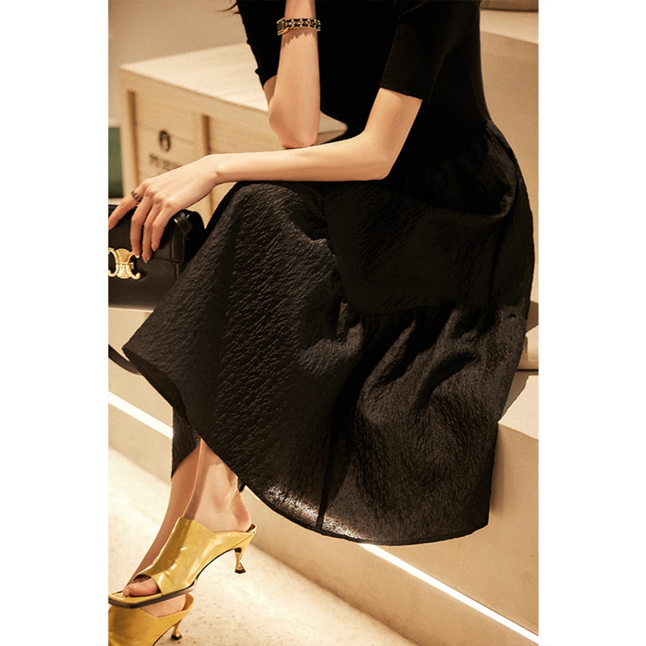 ワンピース プルオーバー ミドル丈 袖あり 半袖 レギュラー袖 ラウンドネック 襟なし スタンドカラー Aライン 刺繍 ハイウエスト ポリエステル ニット 大人可愛い カジュアル お洒落 ラブリー キュート とろみ感 無地 夏 誕生日 10代 20代 女性用 OL 通勤 学生 通学 デート お出かけ 女子会 お泊まり 休日 パーティー イベント リゾート 旅行 高原 ホテル ガーデン レストラン ショッピング 外国風 スタイル モテ 美脚 ギフト 安い インスタ映え S M L XL 黒
