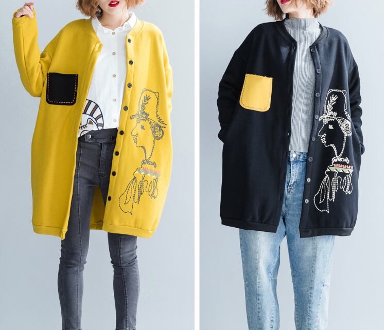 アウター カーディガン 膝上 ミディアム丈 長袖 レギュラー袖 襟付き スタンドカラー ストレート もこもこ ポケット 前開き 厚手 ベルベット カジュアル お洒落 大人女子 こなれ感 ラフ ルーズ 個性的 存在感 とろみ感 柄 プリント 春 秋 冬 誕生日 クリスマス 10代 20代 レディース ママ 学生 通学 デート お出かけ 公園デビュー 休日 アウトドア イベント 旅行 高原 レストラン ショッピング 着回し 重ね着 コーデ 楽ちん 暖かい モテ ギフト インスタ映え L XL 黒 黄色