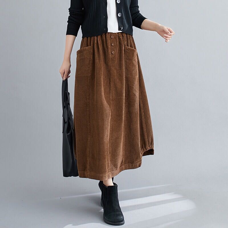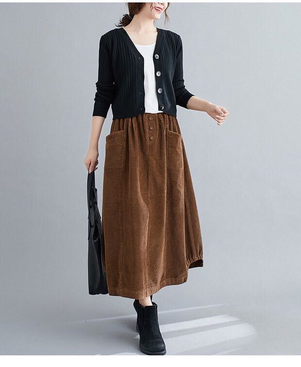コーデュロイ スカート ロングスカート コクーンスカート ロング ロング丈 9分丈 アンクル丈 ストレート ワイド Aライン ハイウエスト かわいい 大人可愛い きれいめ シンプル カジュアル 大人 おしゃれ レトロ 大人女子 こなれ感 ラフ ラブリー キュート 存在感 抜け感 無地 秋 冬 10代 20代 30代 レディース OL 学生 通学 デート お出かけ 公園デビュー 女子会 休日 着回し 普段使い 暖かい モテ 体系カバー サイズ S M L XL 2XL 色展開 黒 ブラック 茶色 ブラウン