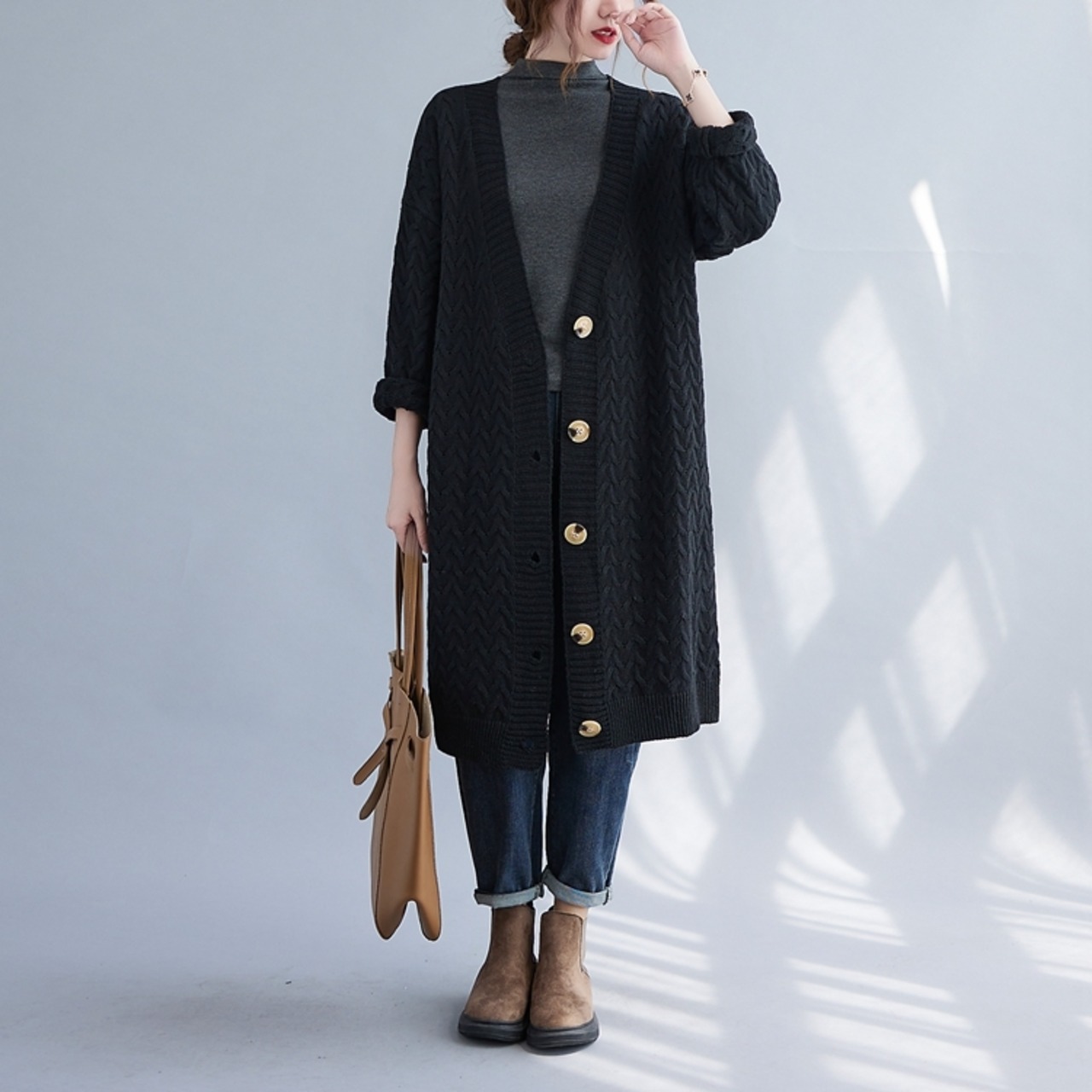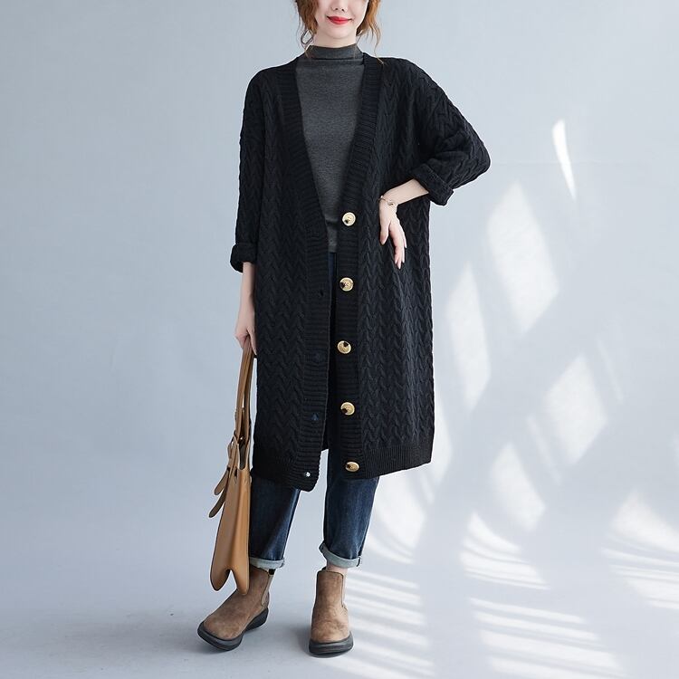 ざっくり編目のロングカーディガン