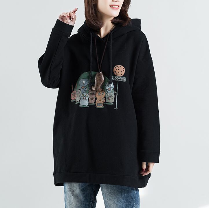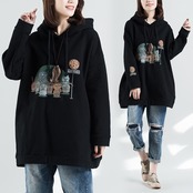 トップス パーカー トレーナー フーディー 袖あり 長袖 萌袖 襟なし フード付き ポケット かわいい カジュアル おしゃれ かっこいい こなれ感 ラフ メンズライク マニッシュ 個性的 主役級 存在感 柄 プリント キャラクター 秋 冬 10代 20代 30代 レディース ママ マタニティ 通学 デート お出かけ 公園デビュー 女子会 お泊まり 休日 アウトドア 旅行 普段使い オルチャン ファッション コーデ スタイル 体系カバー インスタ映え サイズ L XL 2XL 大きいサイズ 黒 ブラック