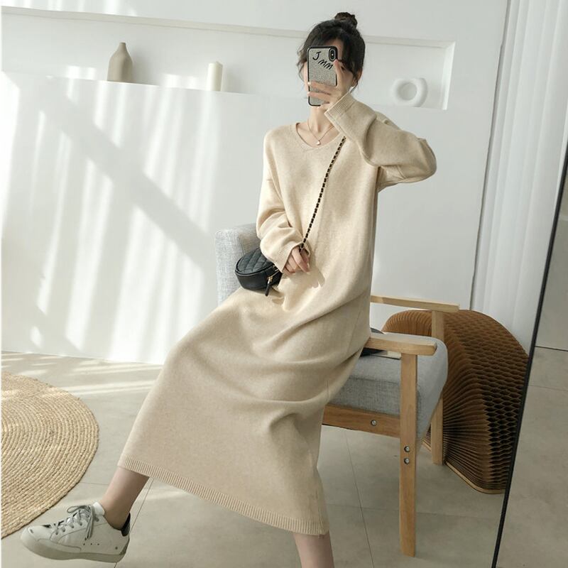 ワンピース ロング丈 マキシ丈 袖あり 長袖 萌袖 Vネック 襟なし 細身 ストレート Iライン ニット かわいい 大人可愛い シンプル カジュアル 大人 おしゃれ 大人女子 こなれ感 クール モダン 主役級 存在感 抜け感 無地 秋 冬 10代 20代 30代 40代 50代 レディース ママ マタニティ OL 通勤 学生 通学 デート お出かけ 公園デビュー 女子会 お泊まり 休日 着回し 普段使い 重ね着 オルチャン 楽ちん S M L ホワイト ブラック ブルー ブラウン 大人カラー 秋カラー