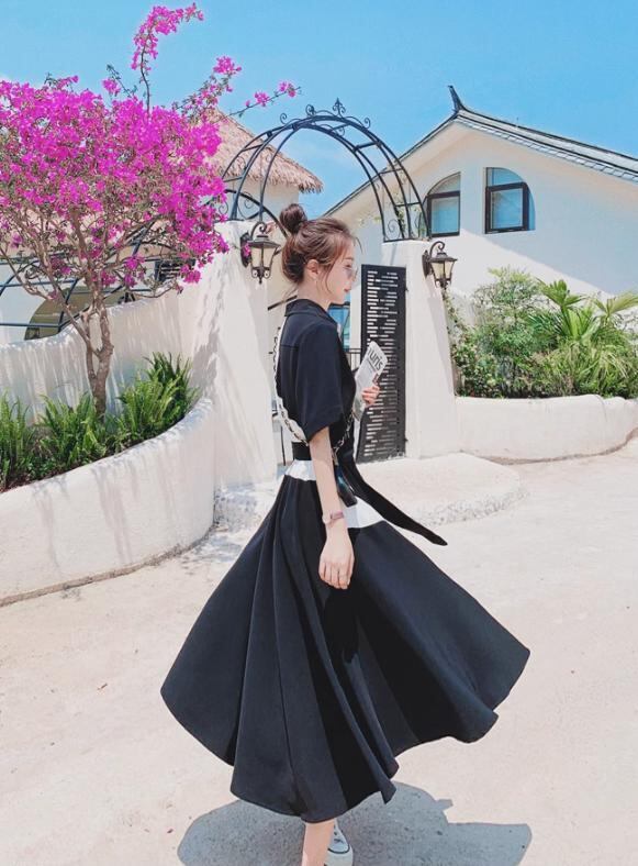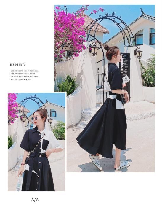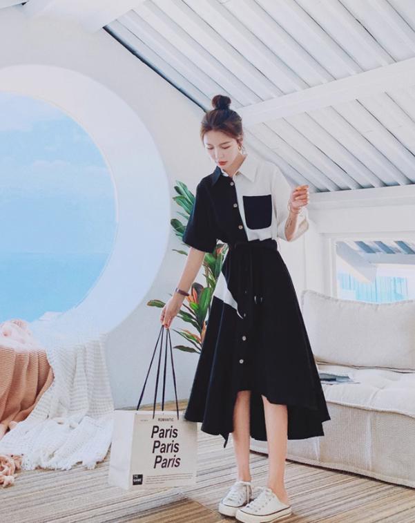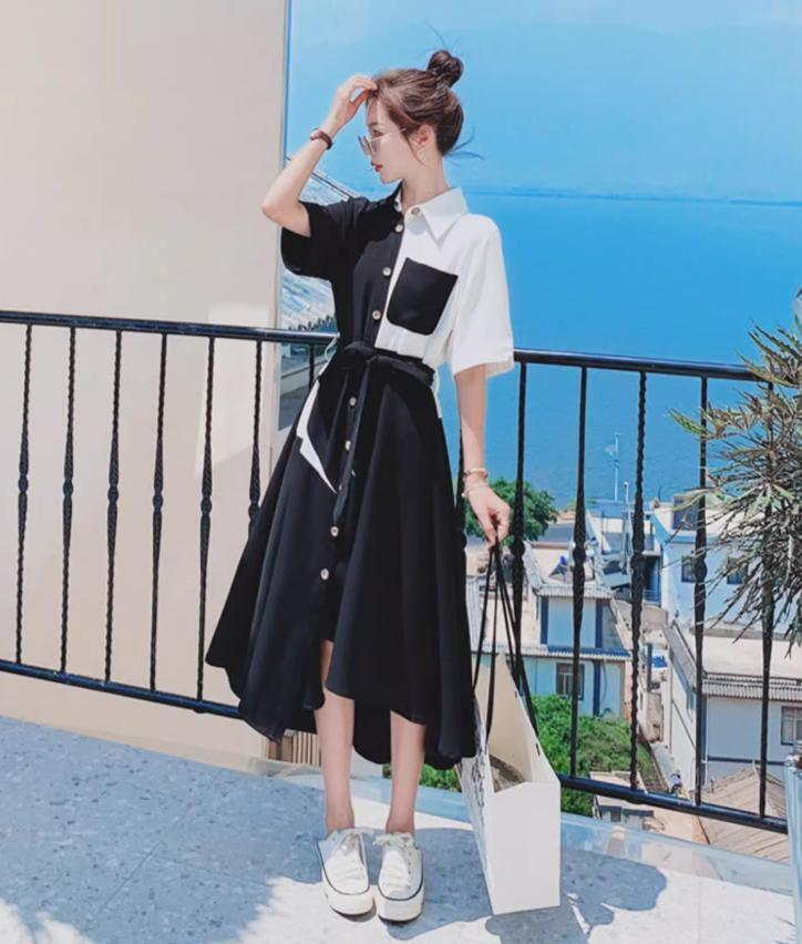 レディース ワンピース レギュラーカラー シャツワンピース ミモレ丈 フレア Aライン 個性的 フレンチスタイル TS13787
