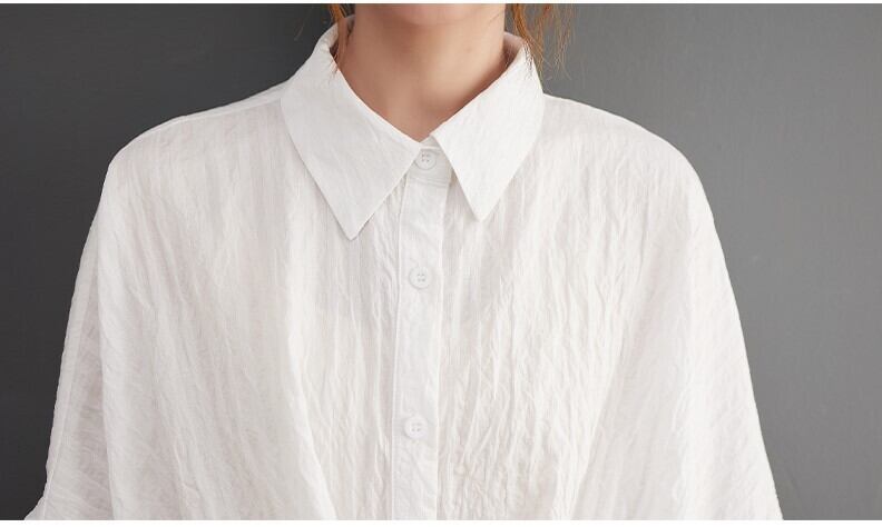 大きいサイズ トップス シャツ ブラウス プルオーバー 白シャツ 白トップス 半袖 五分袖 襟付き アシンメトリー 切り替えデザイン 透け感 かわいい 大人可愛い きれいめ シンプル カジュアル 大人 上品 おしゃれ 大人女子 こなれ感 ラフ ラブリー キュート ルーズ モード系 モダン 存在感 抜け感 無地 春 夏 20代 30代 40代 レディース ママ OL 通勤 学生 通学 デート お出かけ 女子会 休日 着回し 普段使い 楽ちん モテ 体系カバー サイズ L XL ゆったり ゆる 色展開 白 黒