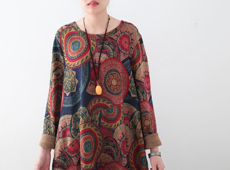 ワンピース ロングワンピース 膝下 ロング ロング丈 袖あり 長袖 ラウンドネック 襟なし ストレート ワイド かわいい 大人可愛い カジュアル 大人 上品 おしゃれ お洒落 レトロ アジアン エスニック 大人女子 ラフ ラブリー キュート ガーリー ルーズ 個性的 存在感 シック ナチュラル スマート 柄 春 秋 冬 ロングシーズン 10代 20代 30代 40代 レディース 女性用 マタニティ マタニティワンピース 学生 デート お出かけ 女子会 休日 お茶会 ランチ ショッピング 着回し