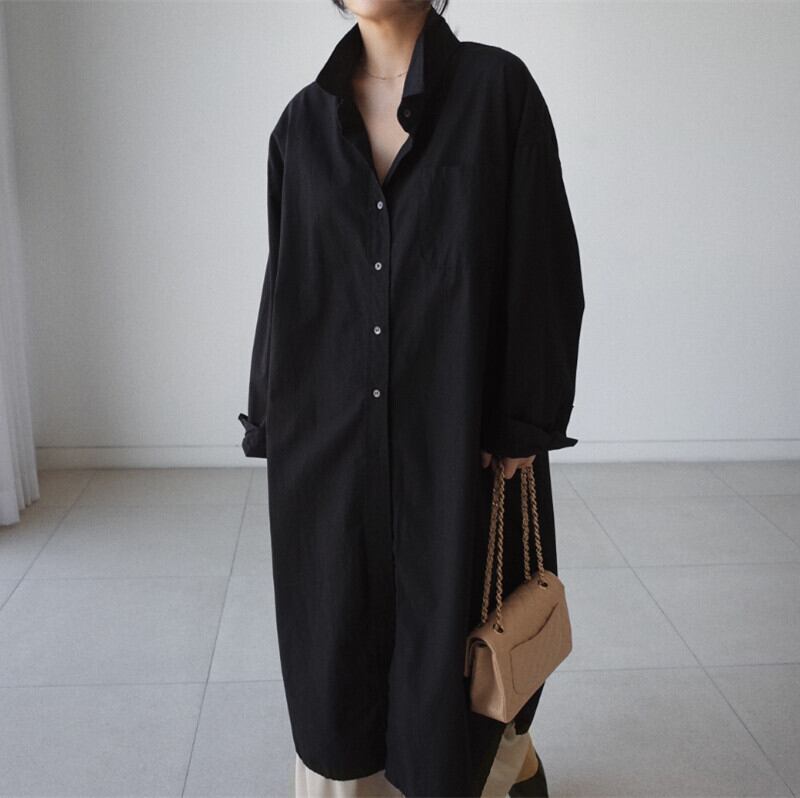 ワンピース シャツワンピース ロング ロング丈 袖あり 長袖 襟付き ストレート オーバーシルエット かわいい 大人可愛い シンプル カジュアル 大人 お洒落 かっこいい レトロ 大人女子 こなれ感 ラフ ガーリー 個性的 主役級 存在感 抜け感 無地 春 秋 10代 20代 30代 40代 レディース OL 通勤 学生 通学 デート お出かけ 女子会 旅行 着回し 普段使い 重ね着 オルチャン ファッション 楽ちん S M L XL ビッグサイズ ゆったり ホワイト ブラック ベージュ