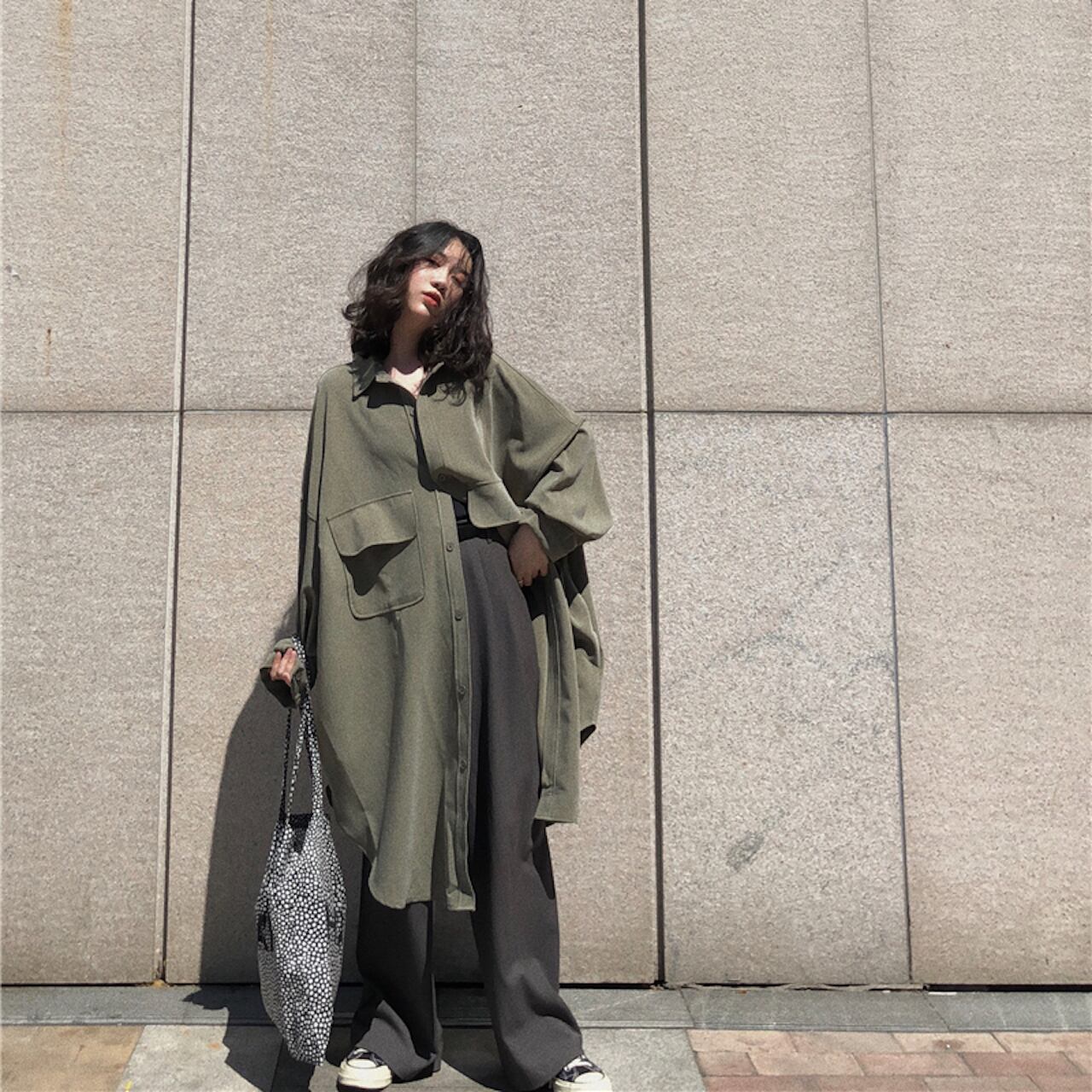 アウター シャツ ブラウス コート ジャケット 袖あり 長袖 ボリューム袖 レギュラーカラー フレア ワイド Aライン 前開き かわいい 大人可愛い きれいめ シンプル カジュアル 大人 おしゃれ お洒落 かっこいい レトロ 大人女子 こなれ感 ラフ メンズライク マニッシュ ボーイッシュ スポーティー ルーズ クール モード系 存在感 とろみ感 抜け感 無地 春 夏 秋 10代 20代 30代 40代 デート お出かけ 公園デビュー 女子会 オルチャン ファッション コーデ 体系カバー 大きい 大きめ