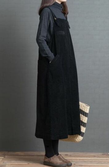 ワンピース ジャンパースカート ミモレ丈 ミディアム丈 ストレート バックスリット ポケット コーデュロイ かわいい 大人可愛い シンプル カジュアル 大人 おしゃれ かっこいい レトロ 大人女子 こなれ感 ラフ ルーズ モダン 主役級 存在感 無地 秋 冬 10代 20代 30代 40代 レディース ママ 通勤 通学 デート お出かけ 女子会 お泊まり 休日 旅行 着回し 普段使い 重ね着 ファッション コーデ スタイル 楽ちん モテ 定番 M L XL 2XL ブラック ブラウン 大人カラー
