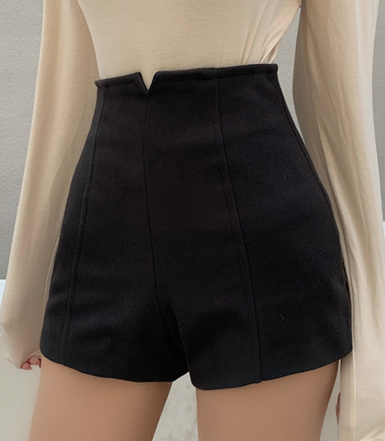 ハイウエスト ウール ショートパンツ ボトムス ショート丈 タイト 細身 きれいめ シンプル 上品 おしゃれ クール セクシー 秋 冬 通勤 通学 デート 韓国系 ファッション 美脚 脚長 XS S M 黒 ブラック アイボリー AS10162