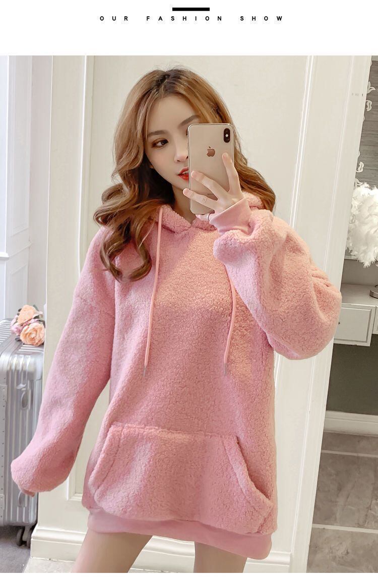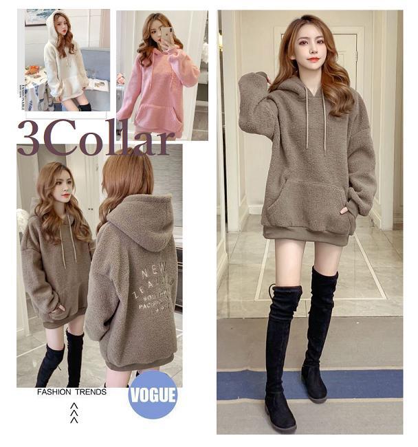 レディース プルオーバー ボア パーカー もこもこアウター ロング丈 長袖 バックロゴ かわいい 秋 冬 韓国系 ファッション コーデ KS10045
