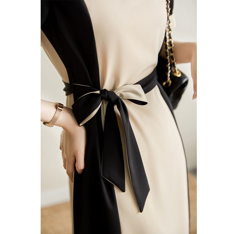 バイカラーワンピース ブラック Aラインワンピース 大きいサイズ ワンピース ドレス 膝丈 ひざ丈 袖あり 半袖 Vネック 襟なし Aライン リボン ウエストマーク ウエストリボン かわいい 大人可愛い きれいめ 大人 上品 おしゃれ 清楚 大人女子 ラブリー キュート ガーリー エレガント 存在感 フォーマル 抜け感 爽やか スマート 無地 春 夏 秋 ロングシーズン 10代 20代 30代 40代 レディース デート 女子会 パーティー イベント ホテル レストラン お呼ばれ お茶会 ランチ