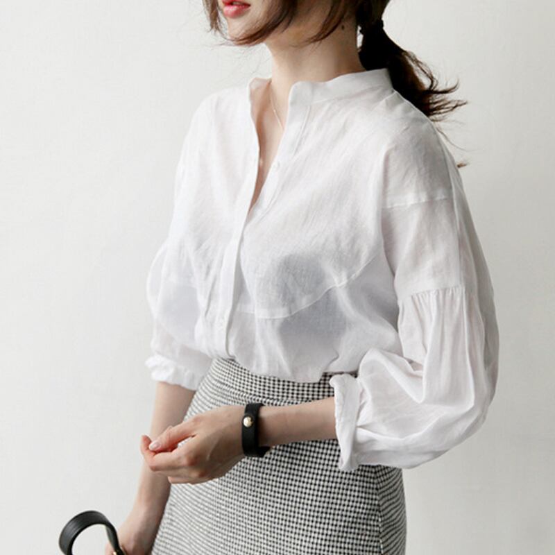 ゆったり コットン リネン トップス シャツ ブラウス 白シャツ 白トップス 7分袖 七分袖 ランタンスリーブ Vネック スタンドカラー ストレート ワイド 前開き かわいい 大人可愛い きれいめ シンプル カジュアル 大人 上品 おしゃれ 大人女子 こなれ感 ラフ クール モード系 モダン 存在感 フォーマル 抜け感 無地 春 夏 10代 20代 30代 レディース オフィス ビジネス OL 通勤 学生 デート お出かけ 女子会 着回し 普段使い モテ サイズ S M L XL 色展開 白 ホワイト