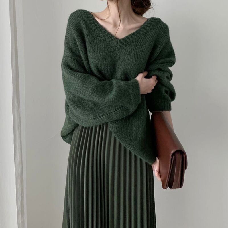 ビッグシルエットでルーズに着こなせるVネックプルオーバーニット。