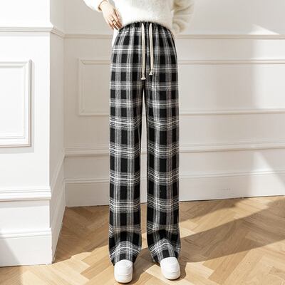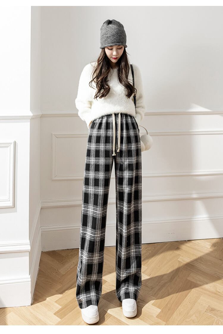 チェック柄パンツ ブラック ブラウン ボトムス パンツ ワイドパンツ ストレートパンツ 膝下 ロング ロング丈 ストレート ワイド ウエストリボン ポケット ハイウエスト ウエストゴム かわいい カジュアル おしゃれ お洒落 かっこいい レトロ ラフ メンズライク マニッシュ ボーイッシュ ラブリー キュート ガーリー 柄 チェック柄 格子柄 春 夏 秋 冬 ロングシーズン 10代 20代 レディース 女性用 女の子 お出かけ 公園 女子会 休日 アウトドア 韓国 韓国系 オルチャン S M L XL