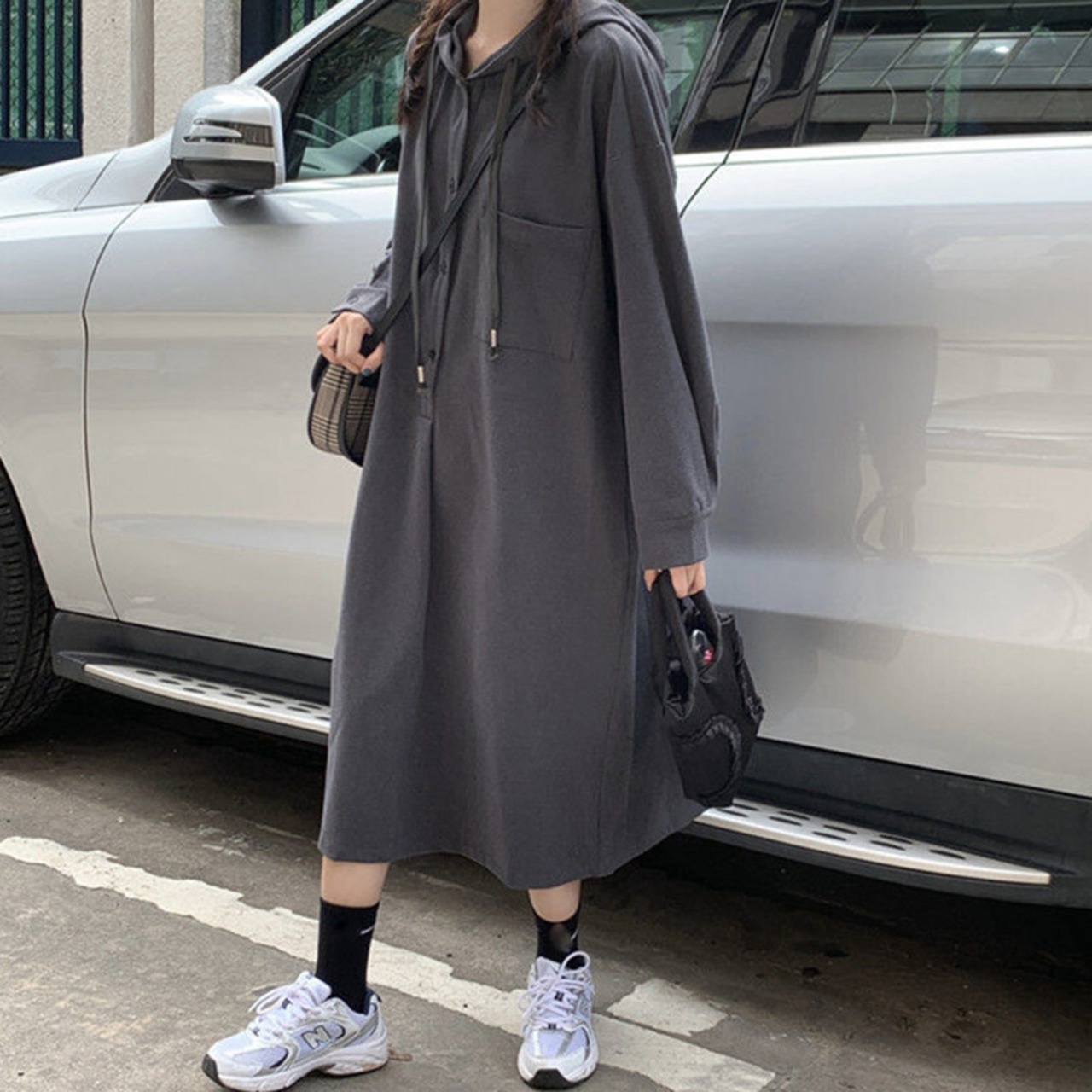 ワンピース プルオーバー 長袖 シャツワンピース 膝下 マキシ丈 フード付き Iライン 大人可愛い きれいめ シンプル カジュアル 大人 上品 お洒落 大人女子 こなれ感 ガーリー モード系 主役級 抜け感 無地 春 夏 秋 冬 20代 30代 40代 ママ デート お出かけ 女子会 休日 旅行 着回し 普段使い 重ね着 楽ちん 体系カバー 定番 トレンド 流行 インスタ映えM L XL 2XL 3XL 4XL グレー