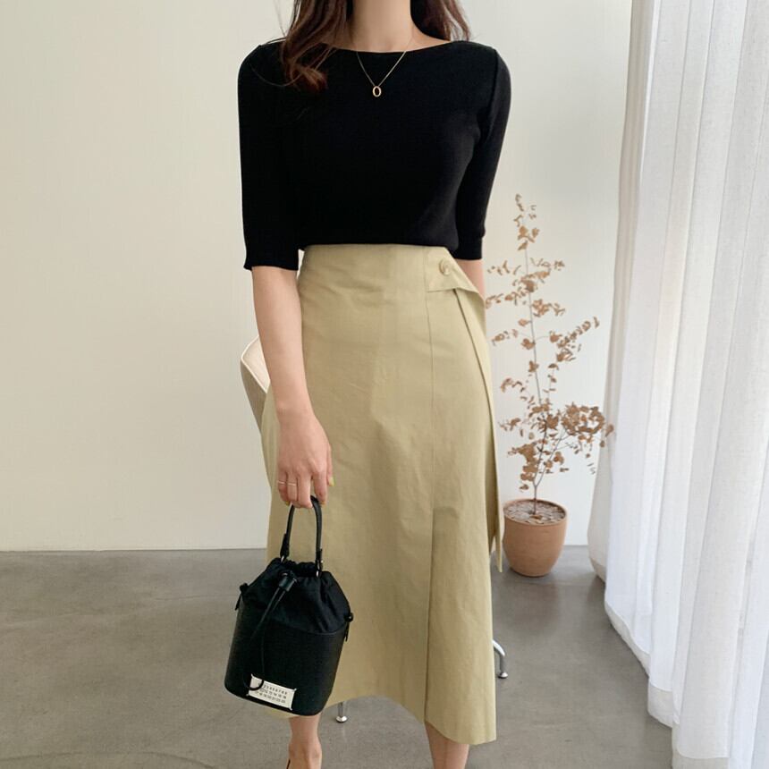 シックな夏ニット、上品でタイトなデザイン。