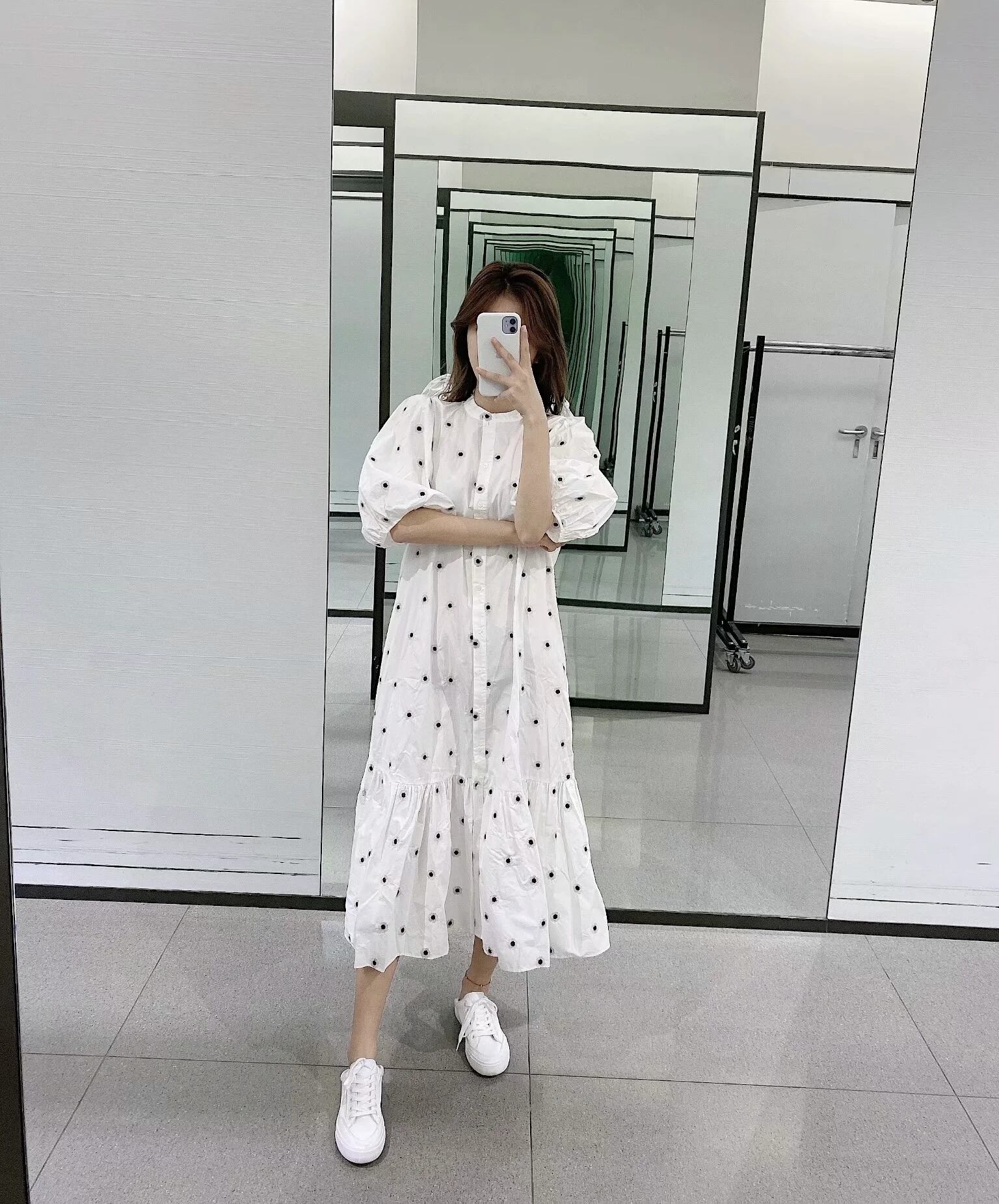 ボリューム袖ワンピース シャツワンピース スカート ワンピース シャツ ロングスカート フレアスカート 膝下 ロング ロング丈 7分丈 ミディアム丈 袖あり 7分袖 七分袖 ボリューム袖 Uネック ワイド Aライン 切り替えデザイン 前開き かわいい 大人可愛い カジュアル 大人 おしゃれ お洒落 大人可愛い 大人女子 ラブリー キュート ガーリー 個性的 主役級 存在感 柄 ドット柄 水玉 春 秋 冬 20代 30代 40代 レディース 女性用 ママ 学生 通学 お出かけ