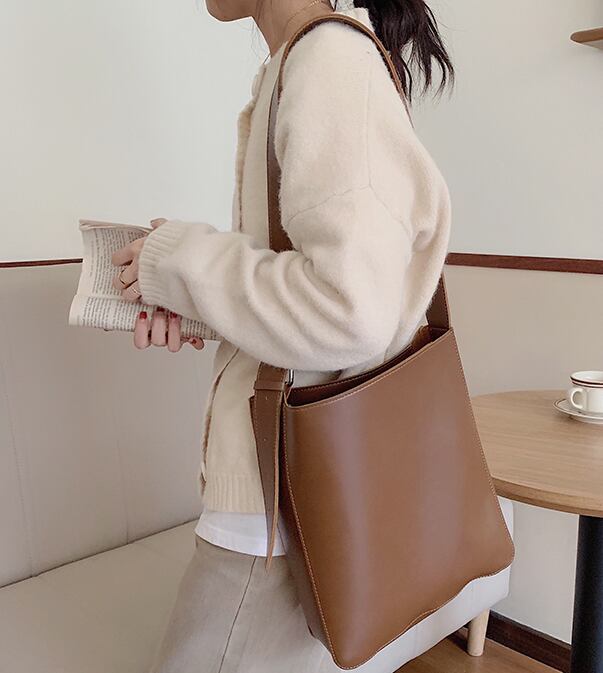 シンプル ワンショルダーバッグ バッグ 斜め掛け 肩がけ PU きれいめ シンプル 大人女子 こなれ感 無地 通勤 通学 デイリー 普段使い 茶色 ブラウン AS10167