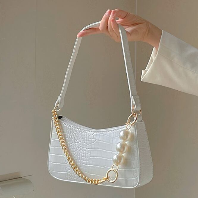 パール ショルダーバッグ クロコダイル柄 レディースバッグ 2way 大人可愛い 上品 おしゃれ こなれ感 デート お出かけ 小さめ 白 ホワイト AS10169