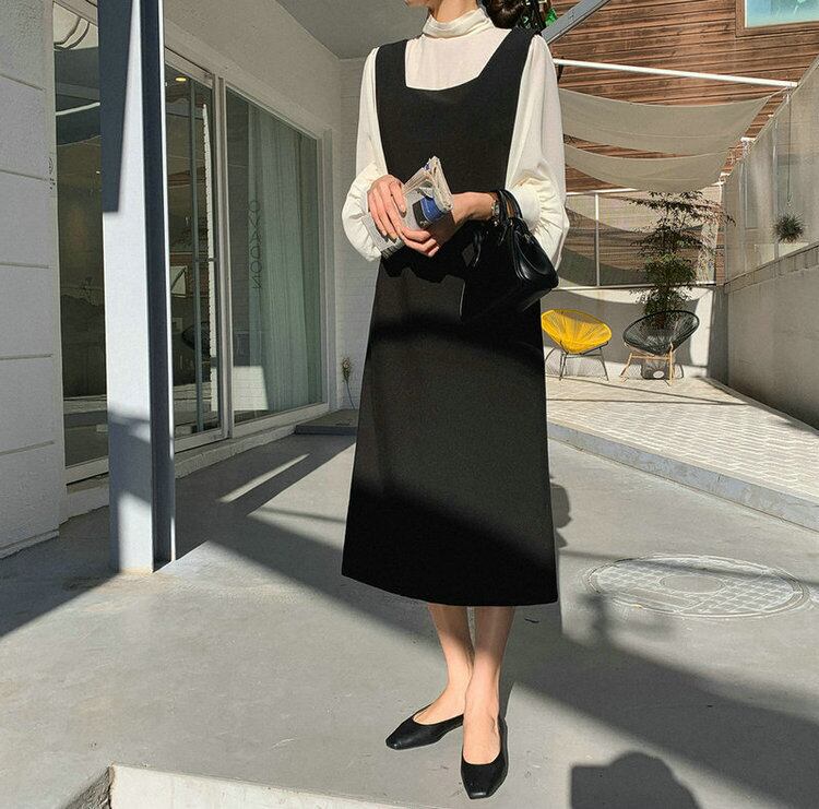 ジャンパースカート スカート ワンピース プルオーバー サロペット ジャンスカ ミモレ丈 ロング丈 ノースリーブ スクエアネック ストレート スリット バックスリット かわいい 大人可愛い きれいめ シンプル カジュアル 大人 上品 おしゃれ 大人女子 こなれ感 ラフ モード系 存在感 抜け感 無地 秋 冬 10代 20代 30代 レディース ママ マタニティ 学生 通学 デート お出かけ 女子会 休日 着回し 普段使い 重ね着 楽ちん モテ サイズ S M L XL 2XL ゆる 色展開 黒 ブラック