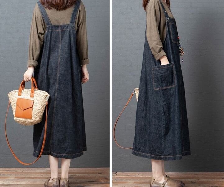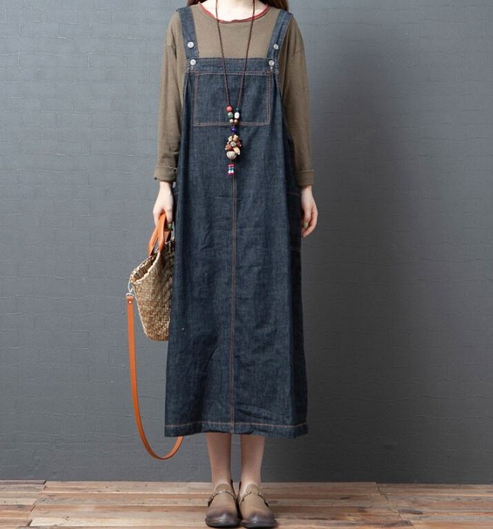 ジャンパースカート ジャンスカ デニムジャンパースカート 膝下 ミモレ丈 袖なし ノースリーブ 襟なし ワイド ポケット デニム 厚手 大人可愛い シンプル カジュアル 大人 上品 お洒落 大人女子 こなれ感 ラフ ボーイッシュ ガーリー 主役級 抜け感 無地 春 夏 秋 20代 30代 40代 ママ 学生 通学 デート お出かけ 女子会 休日 旅行 着回し 普段使い 重ね着 韓国系 楽ちん 体系カバー 定番 トレンド 流行 インスタ映え M L XL 2XL 3XL ゆったり ブルー ブラック