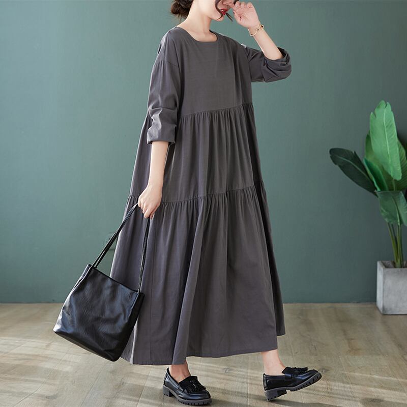 大きいサイズ ワンピース ティアードワンピース ロング丈 マキシ丈 袖あり 長袖 Uネック 襟なし フレア Aライン ポケット かわいい 大人可愛い シンプル カジュアル 大人 おしゃれ 大人女子 こなれ感 ラフ モダン 主役級 存在感 無地 春 秋 10代 20代 30代 40代 50代 60代 レディース ママ マタニティ 通勤 通学 デート お出かけ 公園デビュー 女子会 お泊まり 休日 旅行 着回し 普段使い ファッション 楽ちん 体系カバー L XL 2XL 黒 ブラック 灰色 グレー カラバリ