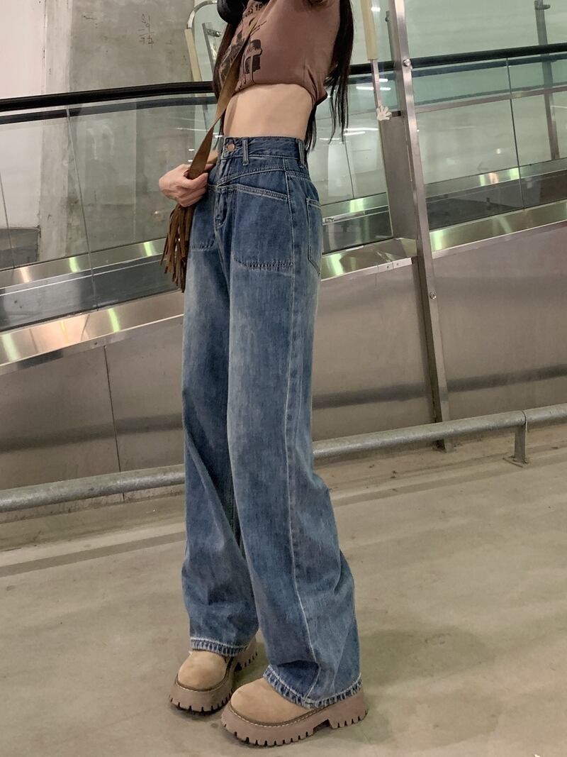 ダッドパンツ ボトムス パンツ ワイドパンツ ストレートパンツ デニムパンツ バギーパンツ ロング丈 ストレート ワイド ポケット ハイウエスト デニム かわいい 大人可愛い シンプル カジュアル 大人 おしゃれ かっこいい レトロ 大人女子 こなれ感 ラフ メンズライク マニッシュ ボーイッシュ ルーズ 個性的 存在感 抜け感 無地 春 秋 冬 10代 20代 30代 レディース 学生 お出かけ 公園デビュー 休日 着回し 普段使い モテ 体系カバー 脚長 サイズ S M L XL 色展開 青 ブルー