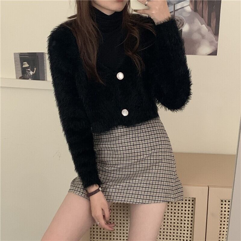 レディース トップス ニット カーディガン ふわふわ シャギー ニット 大人可愛い 韓国系 オルチャン ファッション KS10052