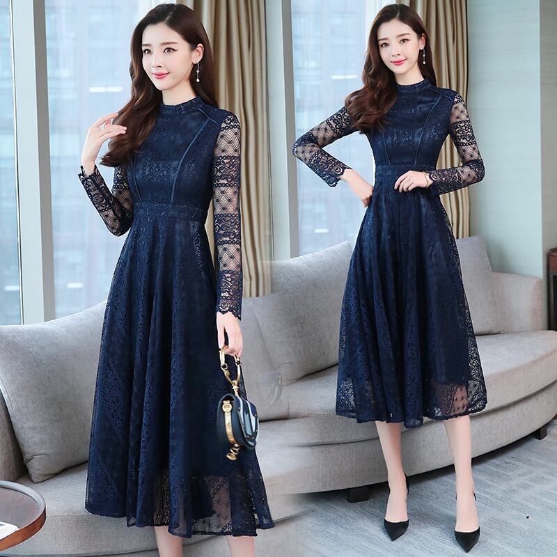 ミモレ丈ドレス ネイビー ブラック ドレス ワンピース Aラインドレス ワンピースドレス ワンピドレス 膝下 ミモレ ミモレ丈 袖あり 長袖 スタンドカラー Aライン チュール ウエストマーク ハイウエスト 透け感 かわいい 大人可愛い きれいめ 大人 上品 おしゃれ お洒落 大人女子 エレガント 華やか 王道 お嬢様 清楚 柄 10代 20代 30代 レディース 女性用 デート お出かけ 女子会 パーティー イベント ホテル レストラン お呼ばれ 体系カバー 美脚 脚長 高見え インスタ映え 結婚式