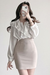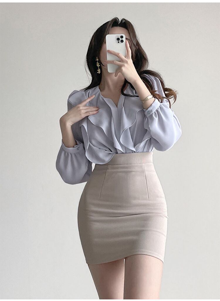 シフォンのキレイめ長袖シャツ