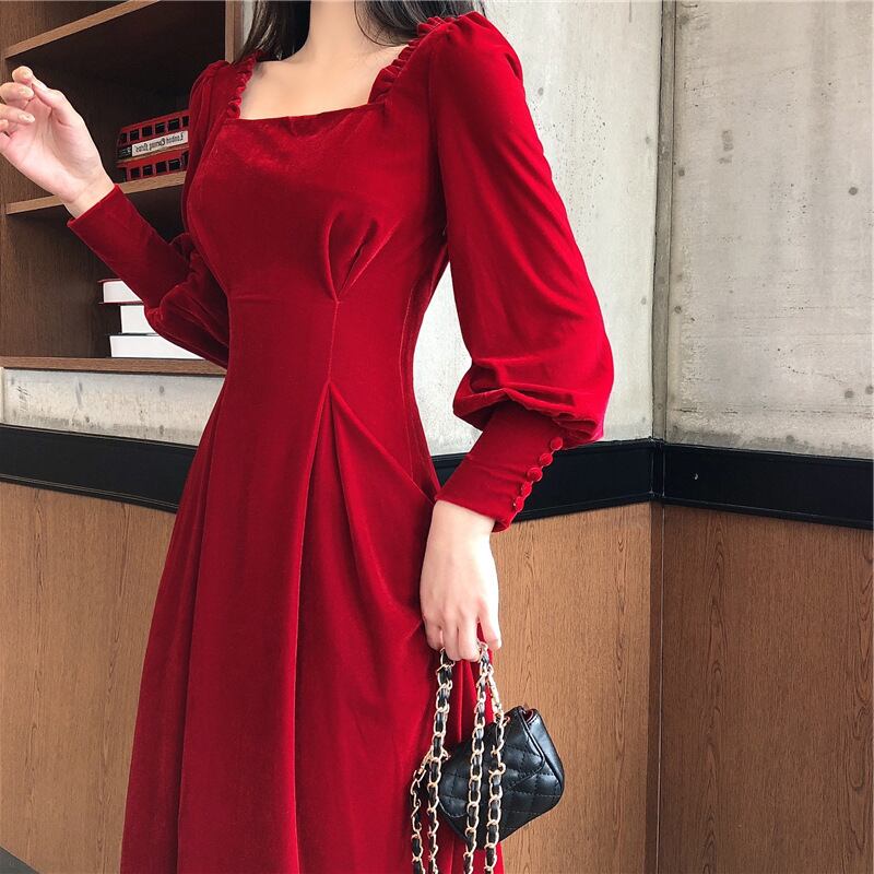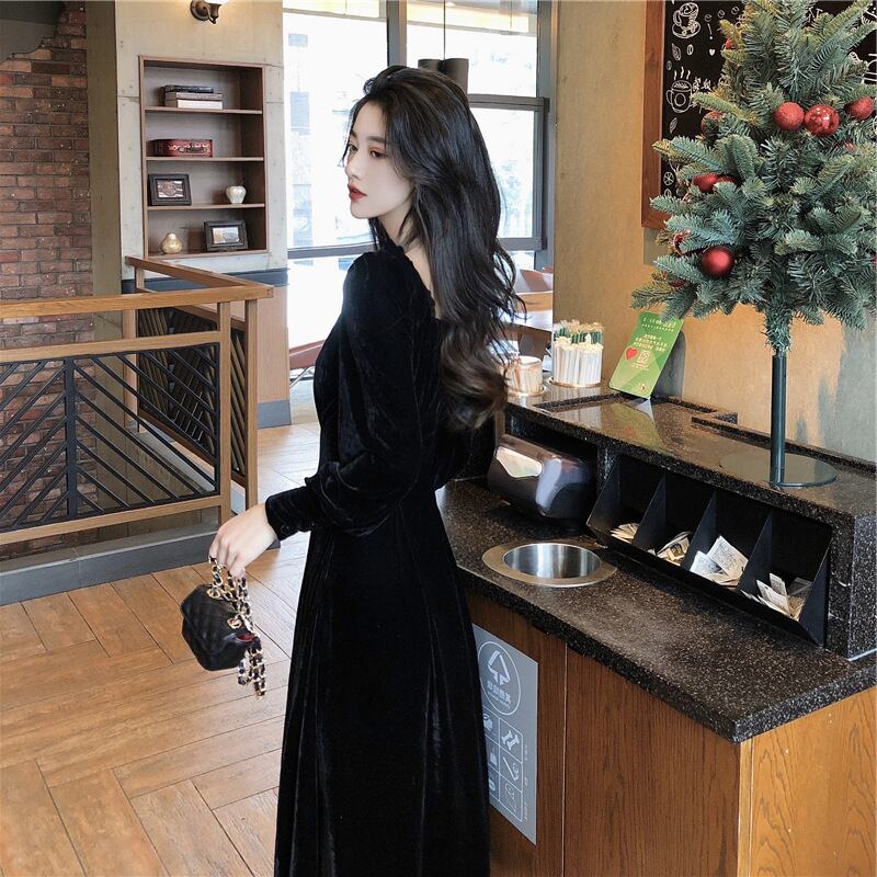クラシカルな雰囲気のベルベットタッチのワンピースドレス。