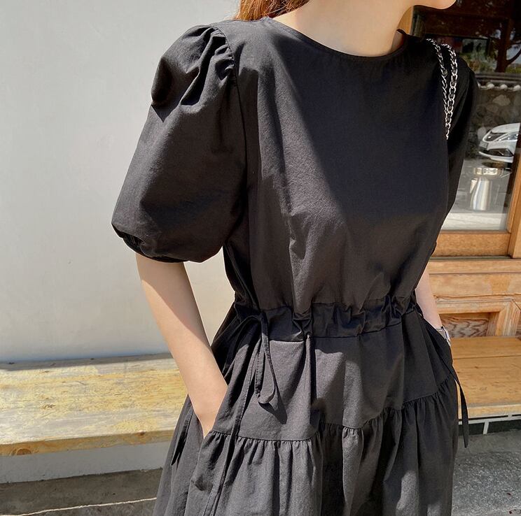 ワンピース フレアワンピース ティアードワンピース ミモレ丈 ミディアム丈 袖あり 半袖 パフスリーブ Uネック 襟なし フレア Aライン ウエストリボン かわいい 大人可愛い シンプル カジュアル 大人 おしゃれ レトロ 大人女子 こなれ感 ガーリー クール モダン 主役級 存在感 無地 春 夏 10代 20代 30代 レディース ママ マタニティ 通勤 通学 デート お出かけ 公園デビュー 女子会 休日 旅行 海 プール 普段使い ファッション コーデ 楽ちん モテ サイズ S M L XL ブラック