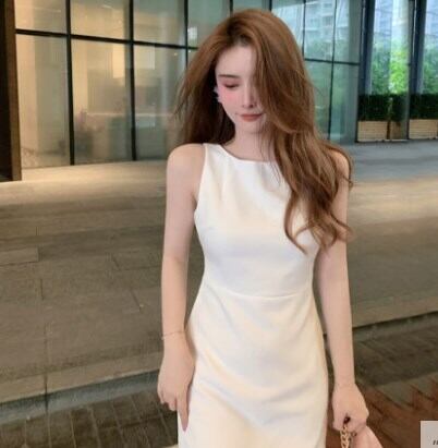 タイトなシルエットが大人っぽく、ヘルシーなノースリーブミニドレス。