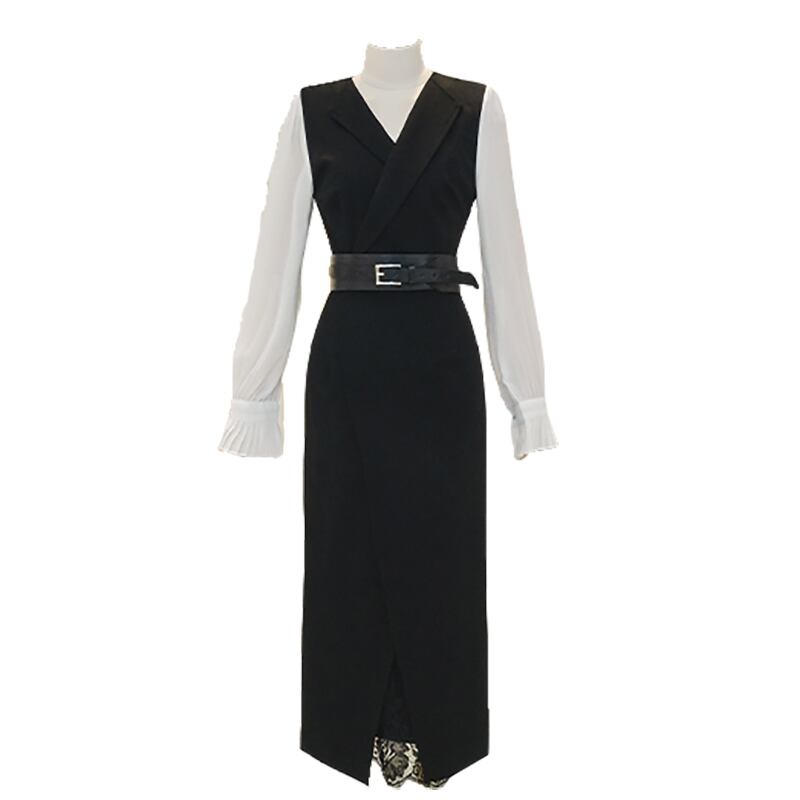 ミモレ丈ワンピース ブラック ワンピース ドレス パーティードレス ミモレ丈ドレス タイトドレス ワンピースドレス ワンピドレス 膝下 ミモレ ミモレ丈 袖あり 長袖 Vネック 襟付き タイト スリム レース ウエストマーク ハイウエスト 透け感 シースルー 大人可愛い きれいめ 大人 おしゃれ お洒落 大人女子 クール モード系 エレガント 存在感 華やか 無地 20代 30代 40代 レディース 女性用 オフィス OL 通勤 デート パーティー イベント ホテル レストラン お呼ばれ 美脚 脚長