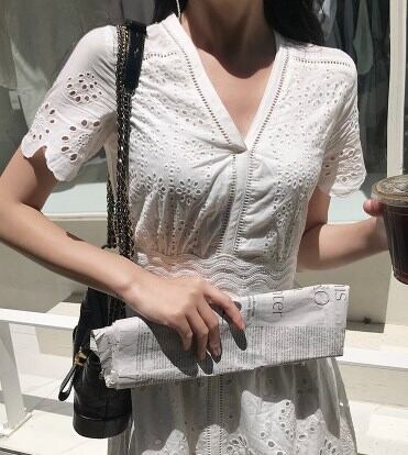 適度な肌の透け感や、フレアな裾がフェミニンさを引き上げてくれる。