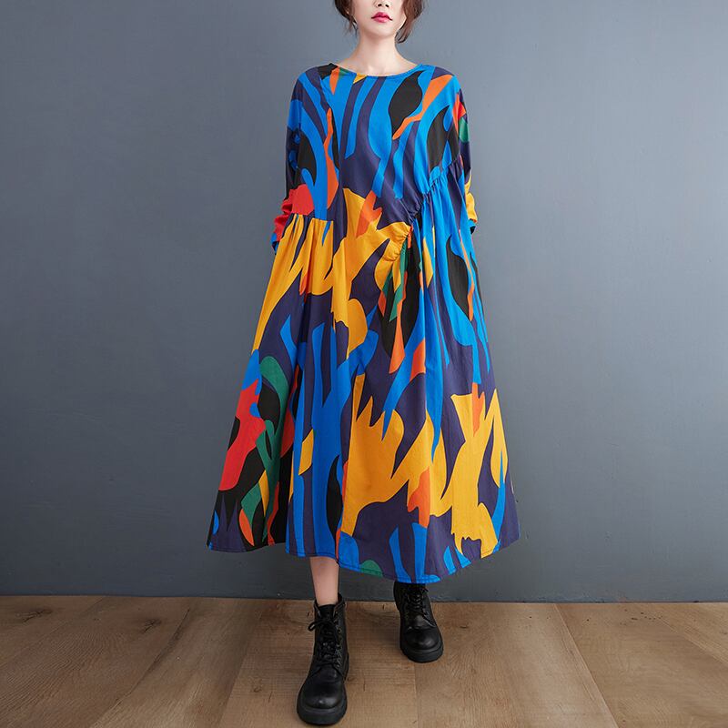 大きいサイズ ワンピース プルオーバー ロングスカート フレアワンピース ミモレ丈 ロング丈 長袖 ラウンドネック フレア ワイド Aライン 切り替えデザイン かわいい 大人可愛い きれいめ カジュアル 大人 上品 おしゃれ エキゾチック 大人女子 こなれ感 ラフ ルーズ 個性的 モード系 モダン 主役級 抜け感 プリント 春 秋 20代 30代 40代 レディース ママ マタニティ OL デート お出かけ 女子会 休日 着回し 普段使い 楽ちん モテ 体系カバー サイズ L XL 大きめ ゆったり ゆる