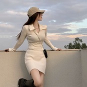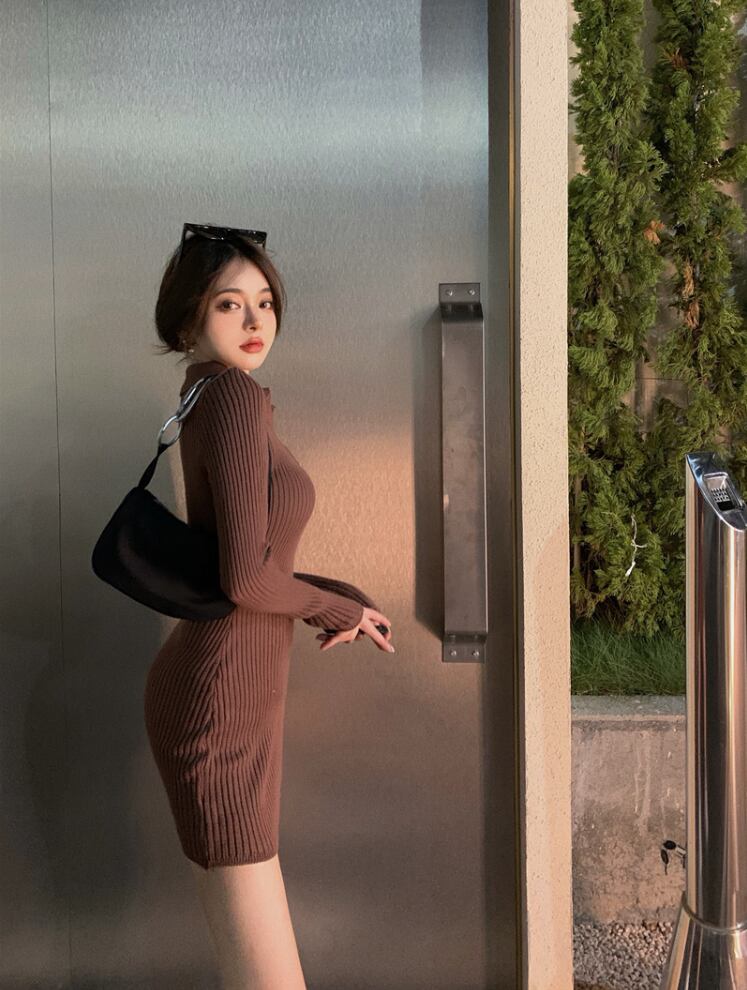ワンピース ミニ丈 袖あり 長袖 萌袖 Vネック 襟付き スリム タイト 細身 Iライン リブ ニット かわいい 大人可愛い シンプル 大人 おしゃれ 大人女子 こなれ感 ラブリー キュート クール モード系 セクシー エレガント 主役級 存在感 抜け感 無地 秋 冬 クリスマス バレンタイン 10代 20代 30代 レディース デート お出かけ 女子会 休日 イベント 旅行 着回し 普段使い 双子 韓国系 オルチャン ファッション コーデ スタイル 楽ちん モテ フリーサイズ ホワイト ブラウン