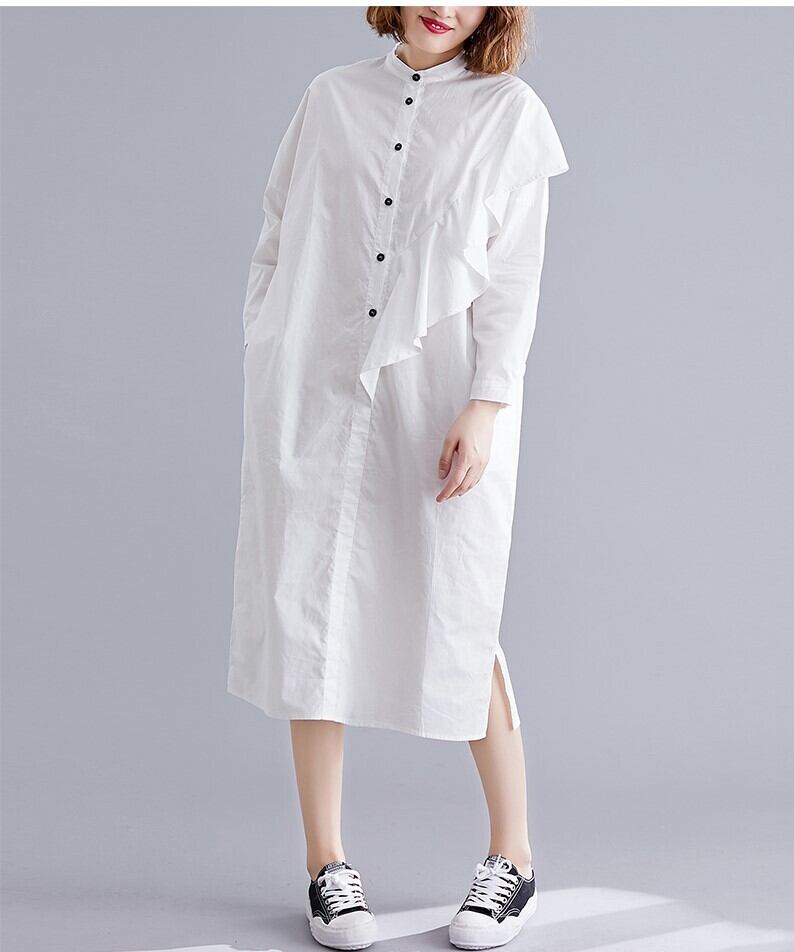 シャツ ワンピース ロングスカート シャツワンピース ワンピドレス ミモレ丈 ロング ロング丈 長袖 スタンドカラー ワイド 切り替えデザイン フリル かわいい 大人可愛い きれいめ シンプル カジュアル 大人 おしゃれ 大人女子 こなれ感 ラフ ルーズ 個性的 存在感 とろみ感 抜け感 無地 春 秋 20代 30代 40代 レディース ママ マタニティ OL 通勤 学生 通学 デート お出かけ 女子会 休日 着回し 普段使い 楽ちん モテ 体系カバー フリーサイズ ゆったり ゆる サイズ 色展開 白