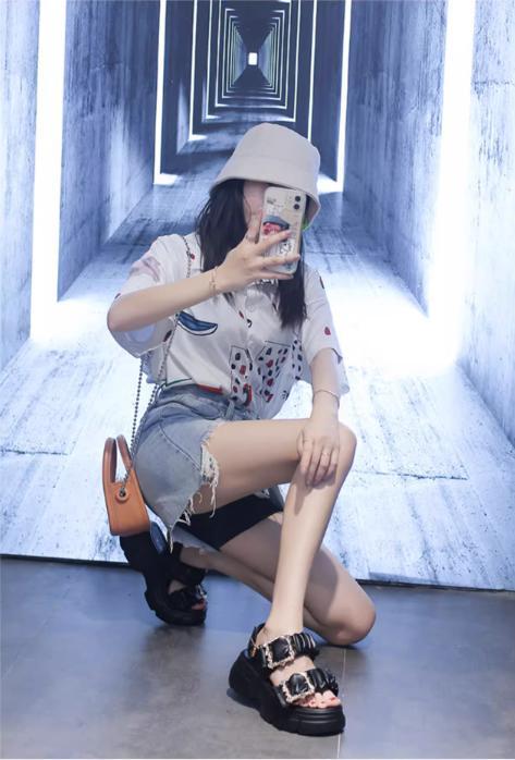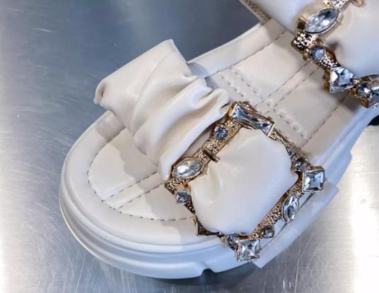 スポーティなシルエットながらビジュー付きバックルで女性らしさを演出するサンダル。