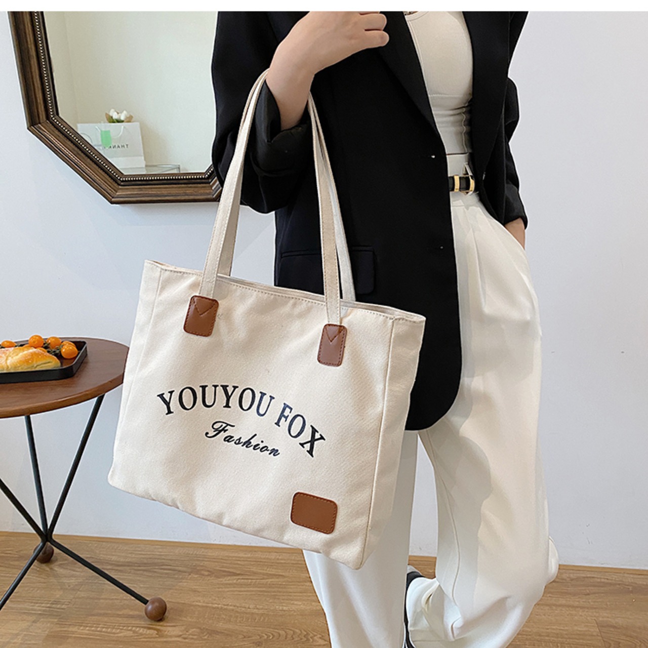 シンプル キャンバス トートバッグ 大容量 肩掛け 便利 カジュアル お洒落 かっこいい ラフ メンズライク 通勤 通学 旅行 お買い物 デイリー 普段使い 白 ホワイト 黒 ブラック AS10178